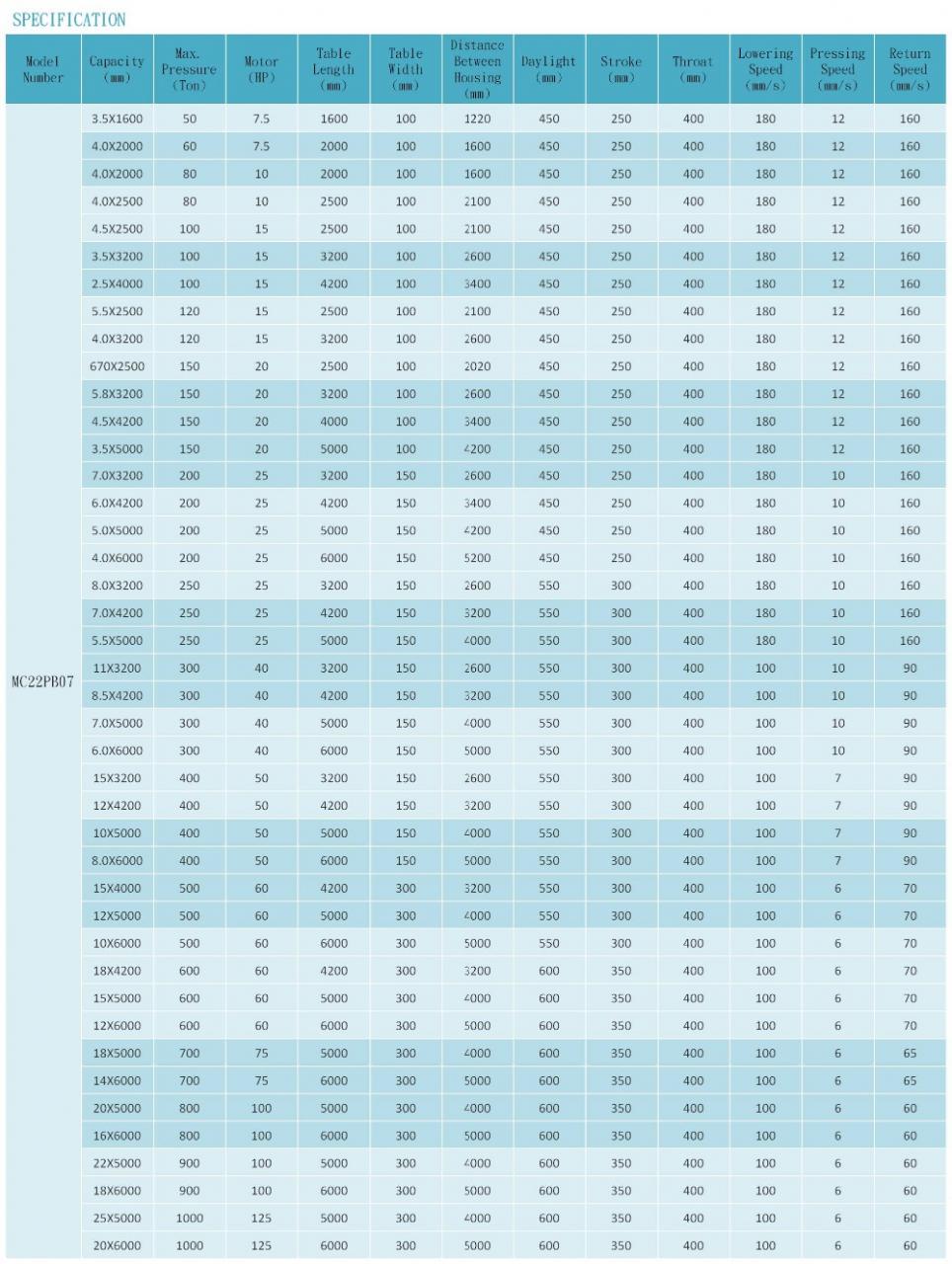 | Maddə nömrəsi | MC22PB07 | Güc | Hidravlik |